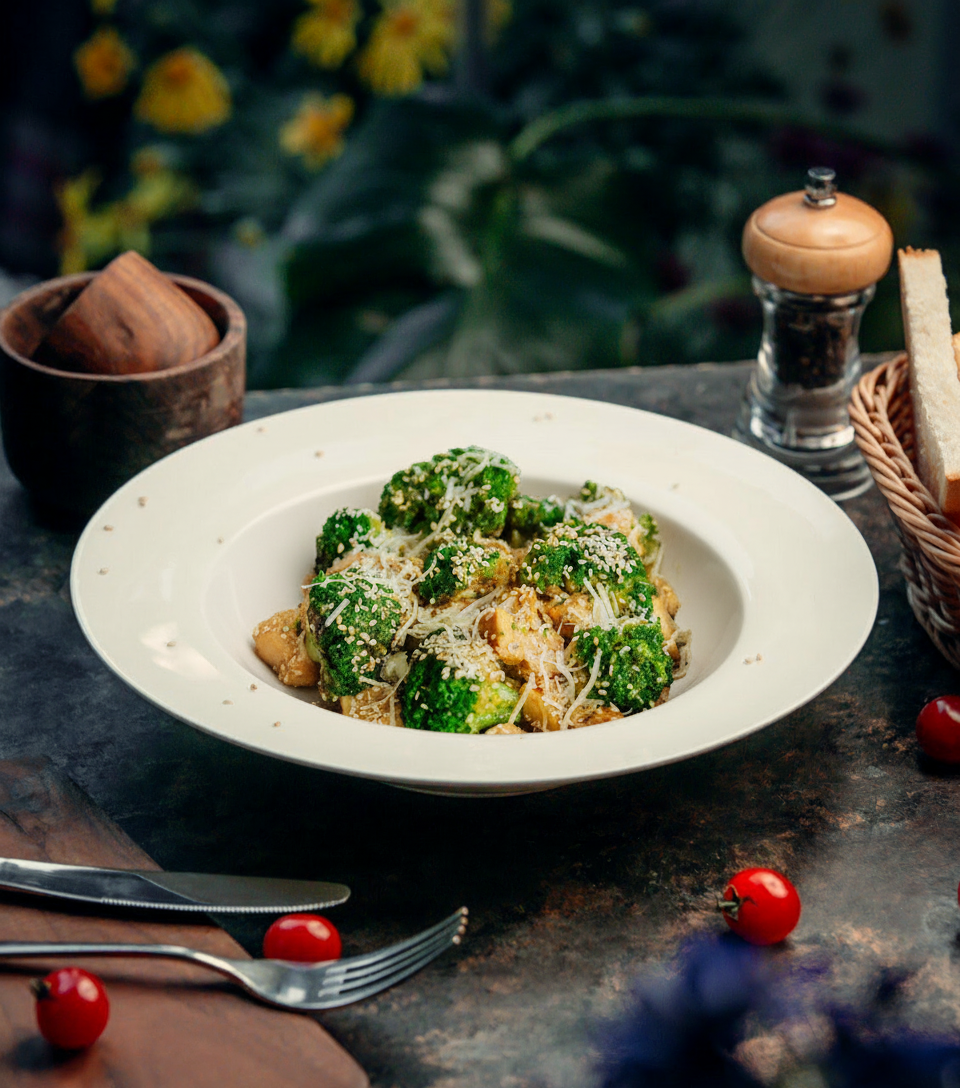 Брокколи с курицей в соусе терияки с пармезаном