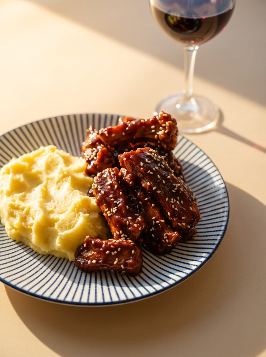 Ребрышки свиные в соусе BBQ c картофельным пюре
