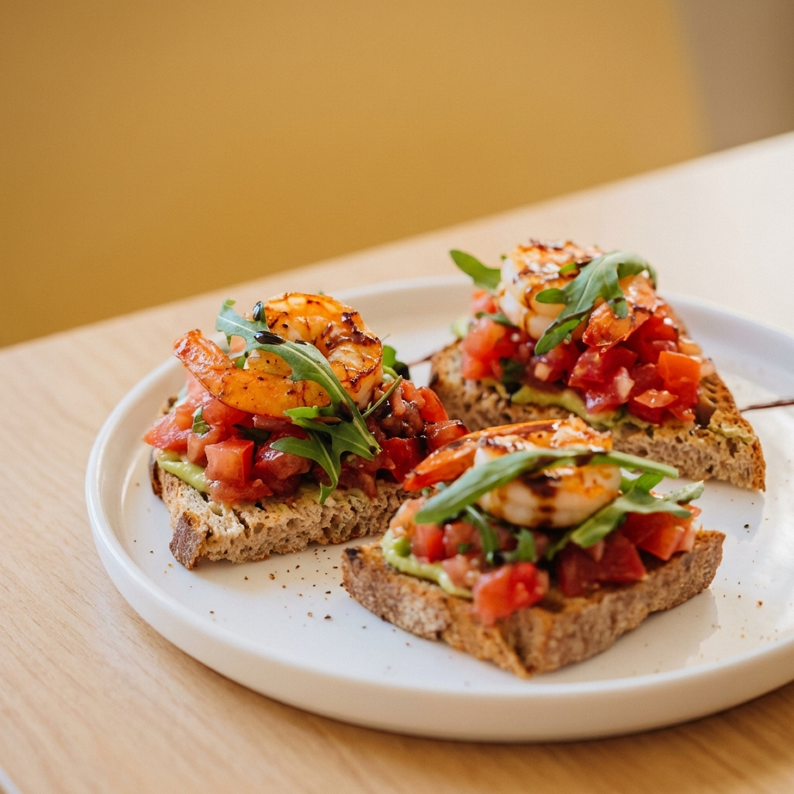 Брускетта с томатной сальсой и тигровыми креветками