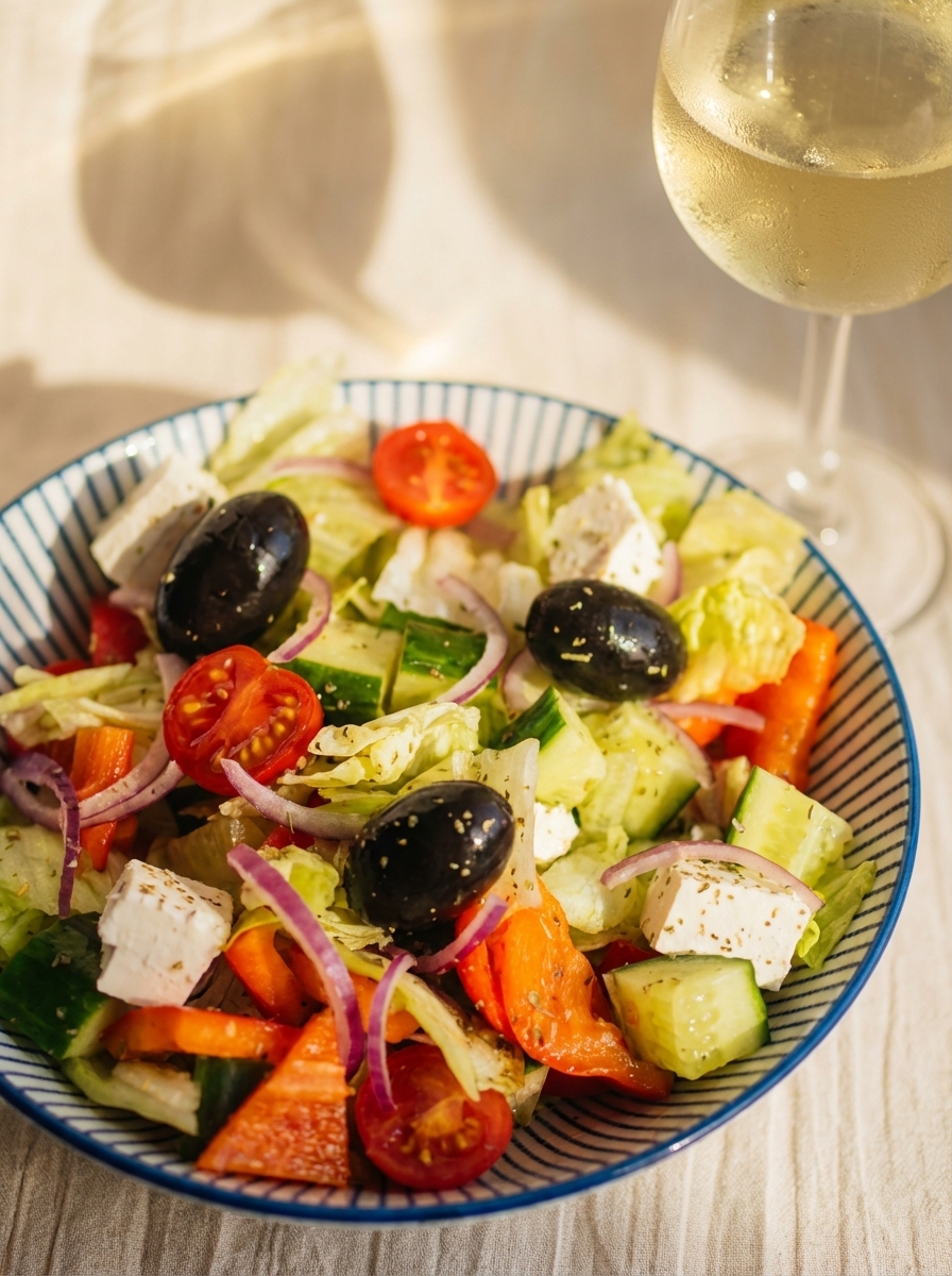 Айсберг, черри, огурец, паприка, маслины, сыр брынза, красный лук ,соус, прованские травы 285гр
