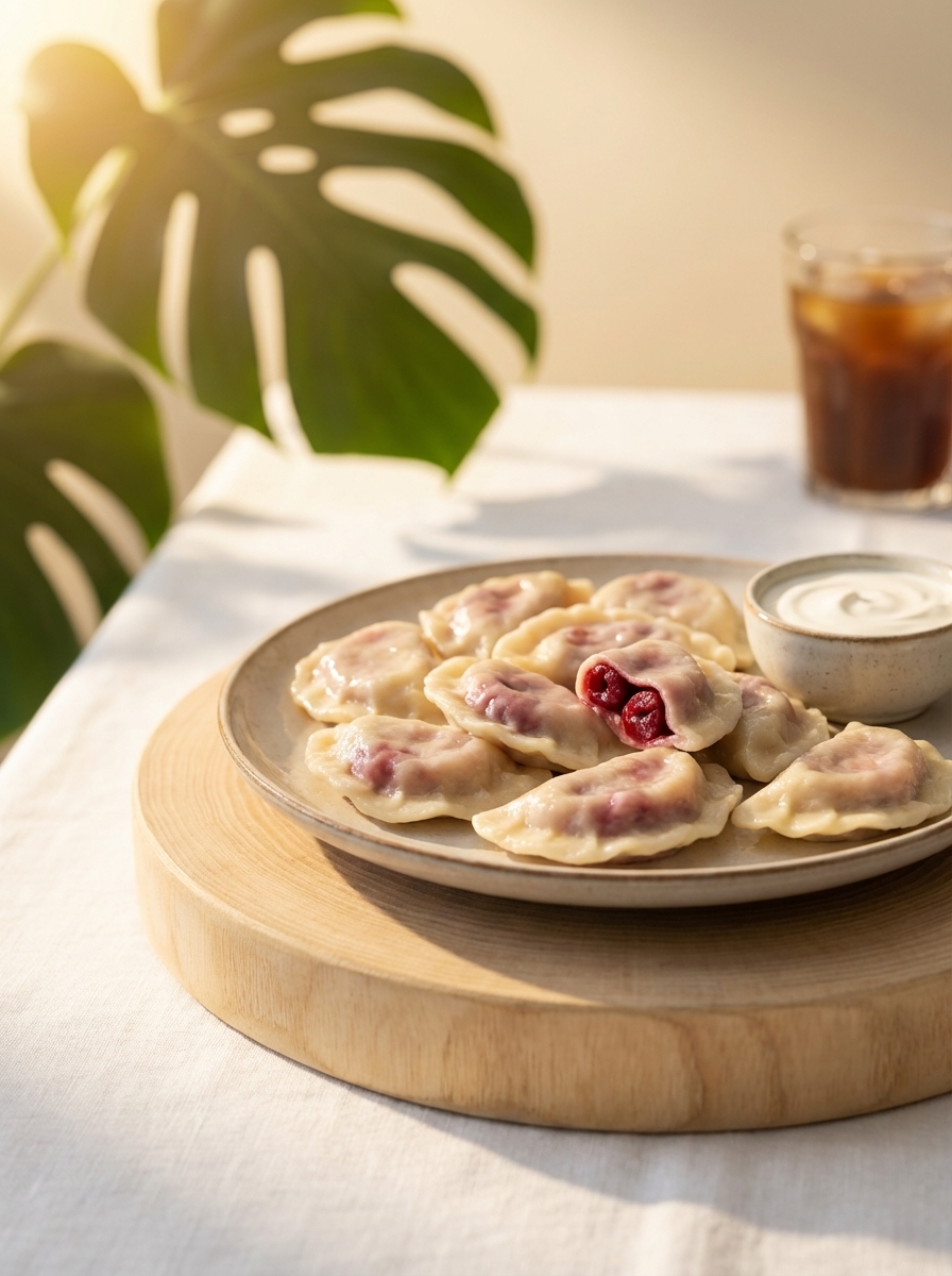 Вареники фермерские с вишней и сметаной