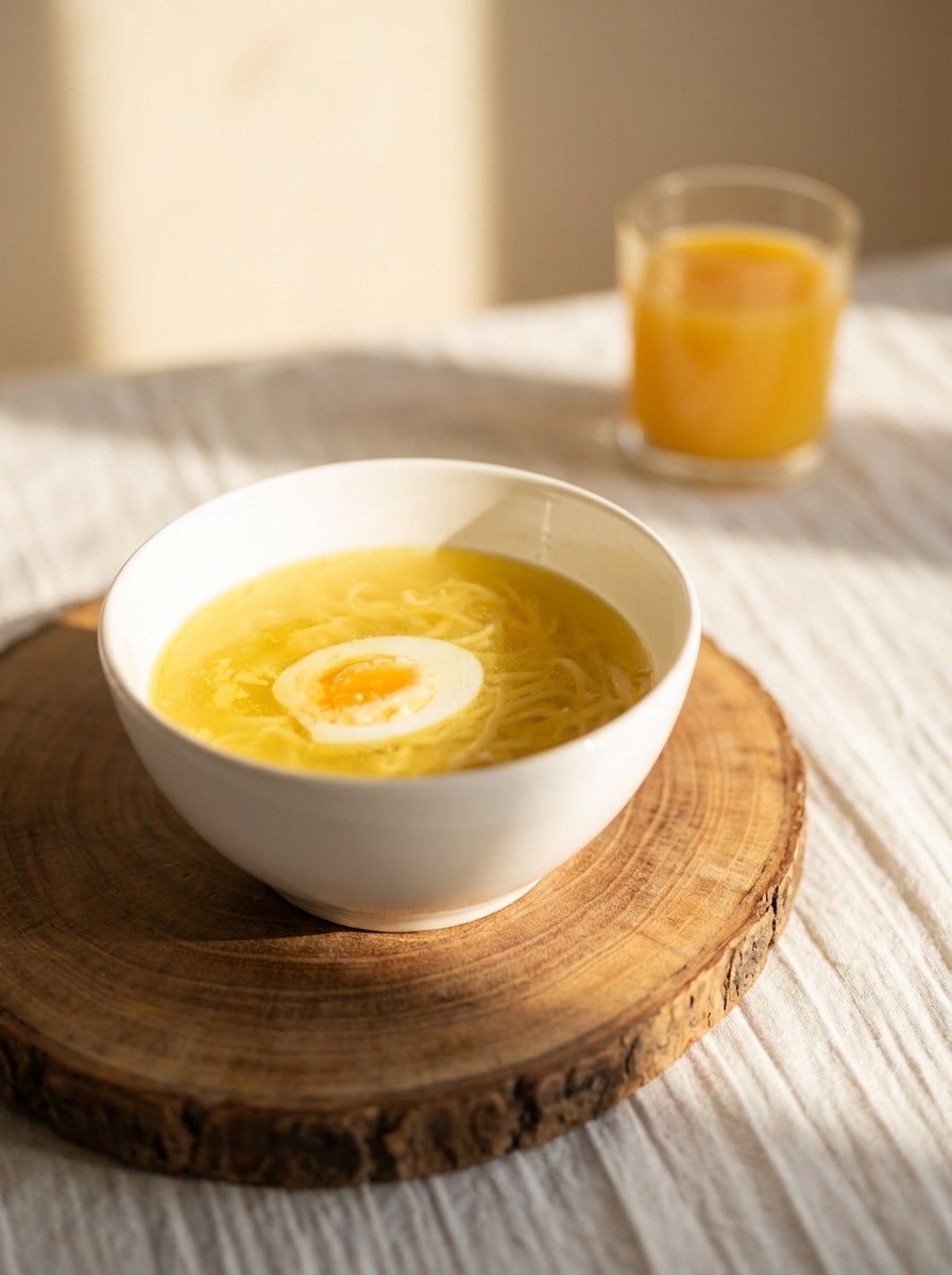 Куриный суп с лапшой и яйцом