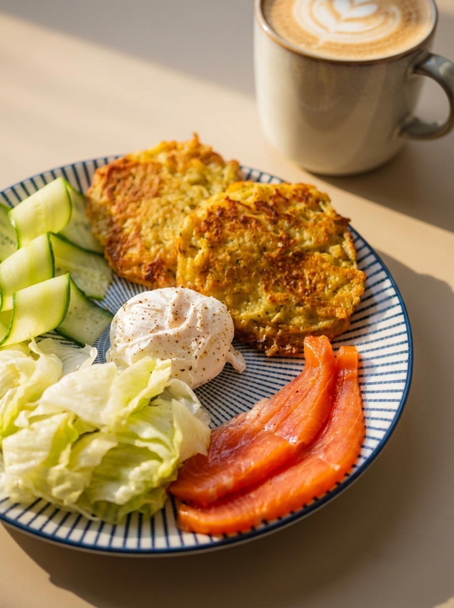 Драники с лососем и яйцом пашот