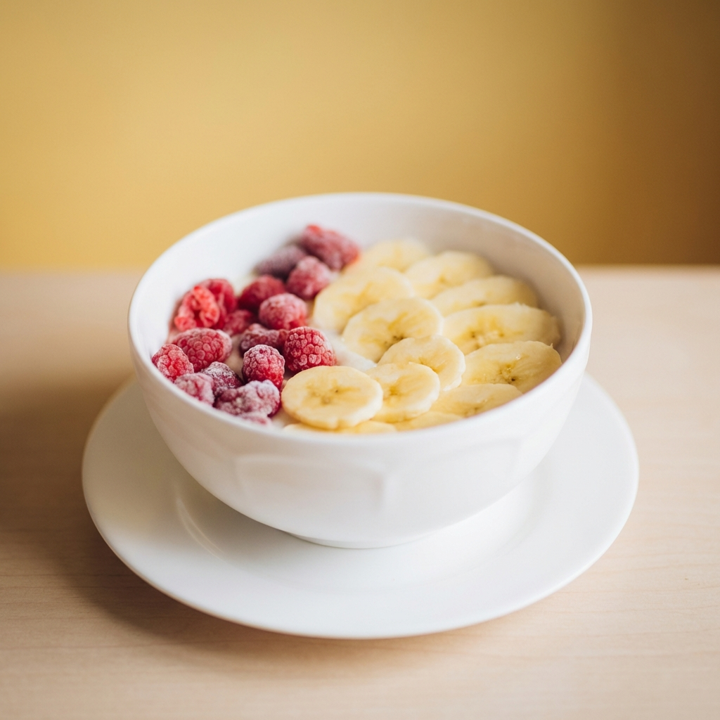 Овсянка, молоко, сироп топинабура, сливочне масло, ягоды, банан
