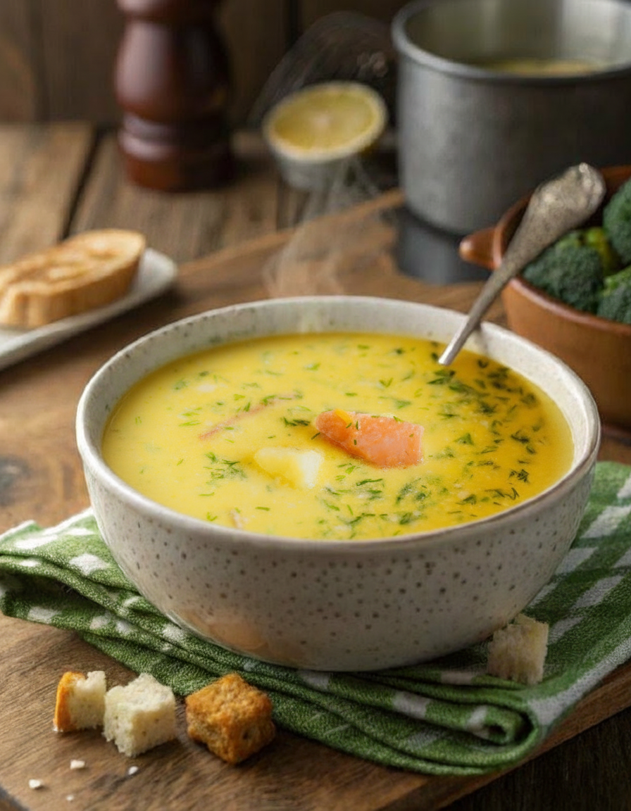 Уха сливочная с форелью и судаком