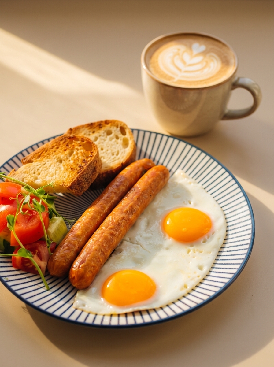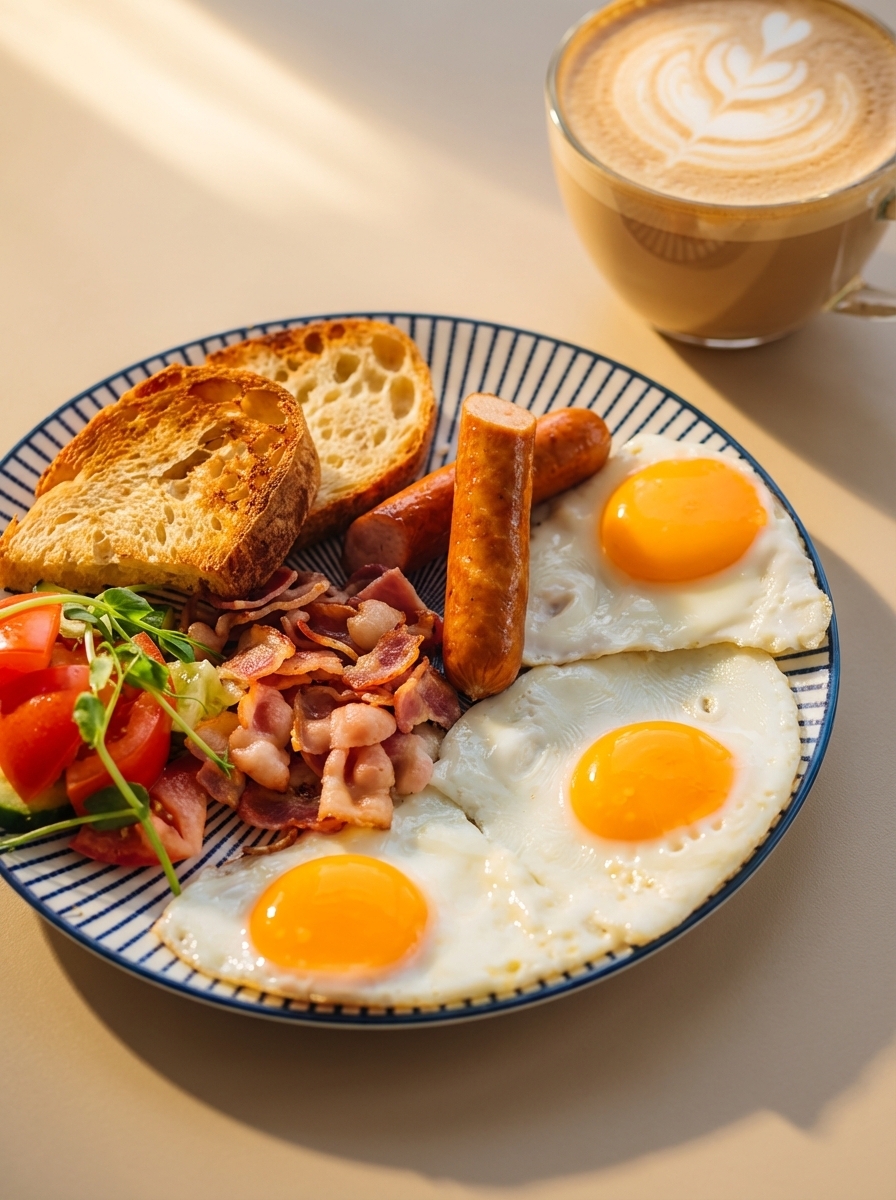 Большой завтрак с глазуньей, беконом и сосиской