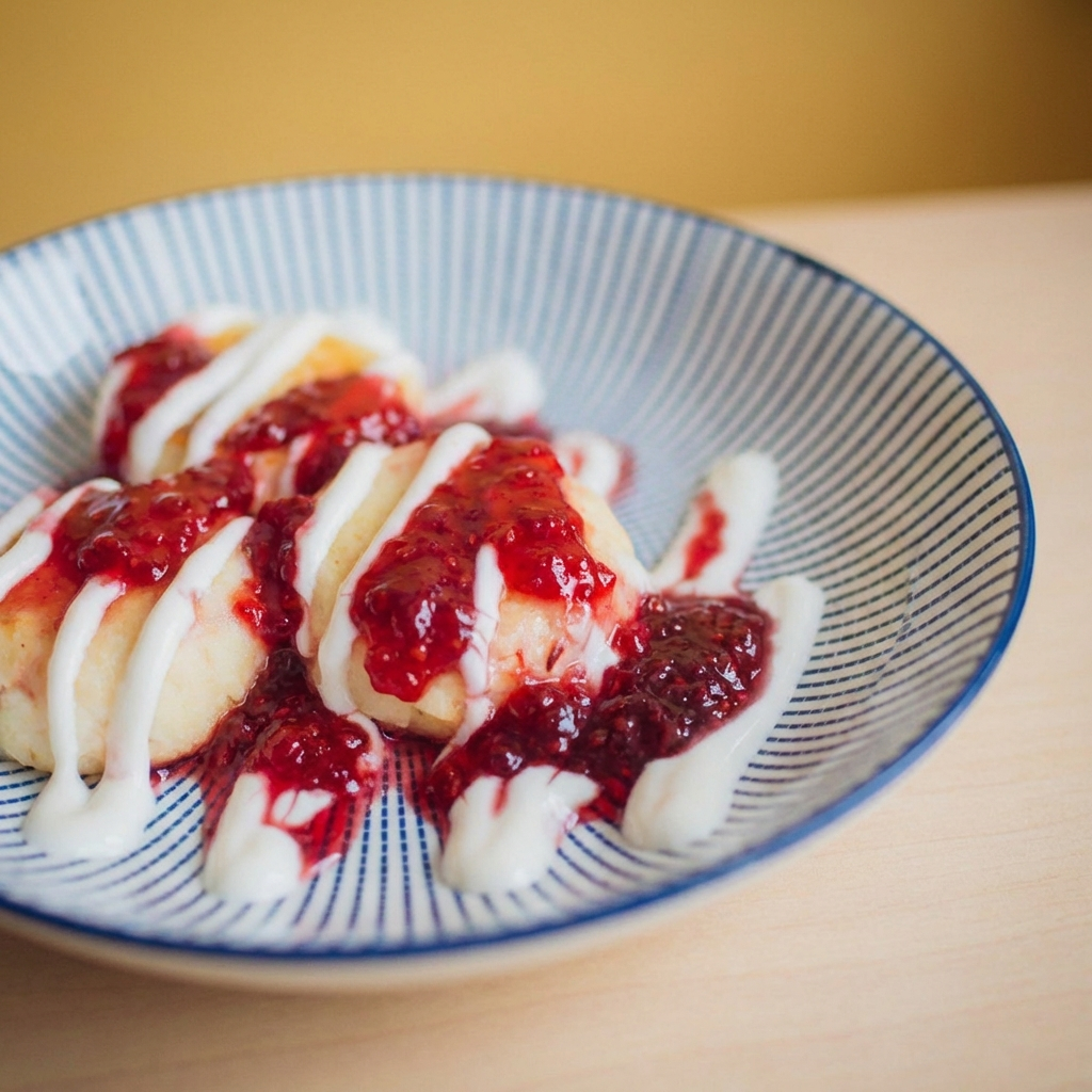 Сырники ПП с клубничым соусом и сметаной