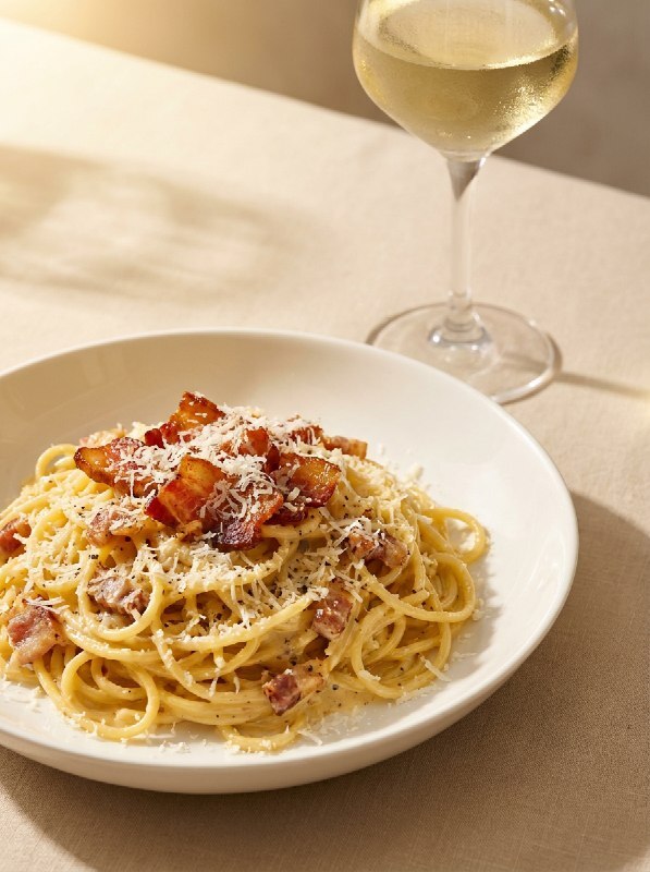 Паста, белое вино, бекон, сливки, пармезан 350 гр