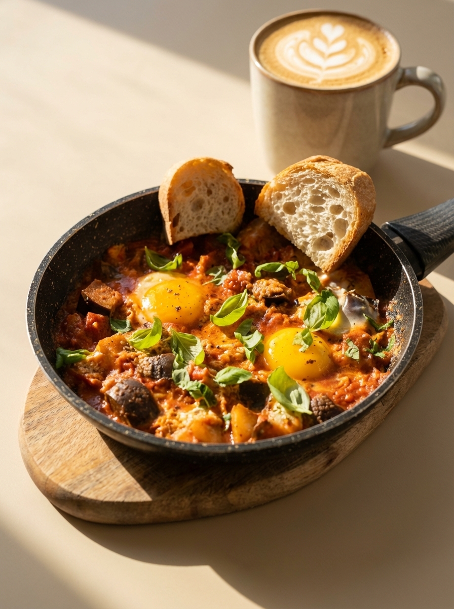 Шакшука с баклажанами (можно сделать острой)