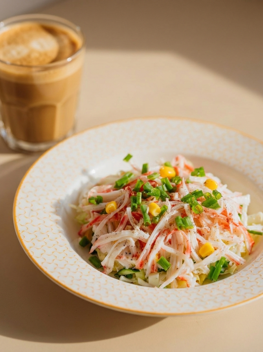Айсберг,огурец,фирменный соус,кукуруза,яйцо.крабовые палочки,зеленый лук 180гр