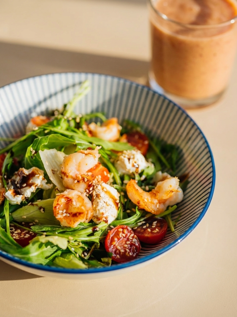 Средиземноморский салат с тигровыми креветками